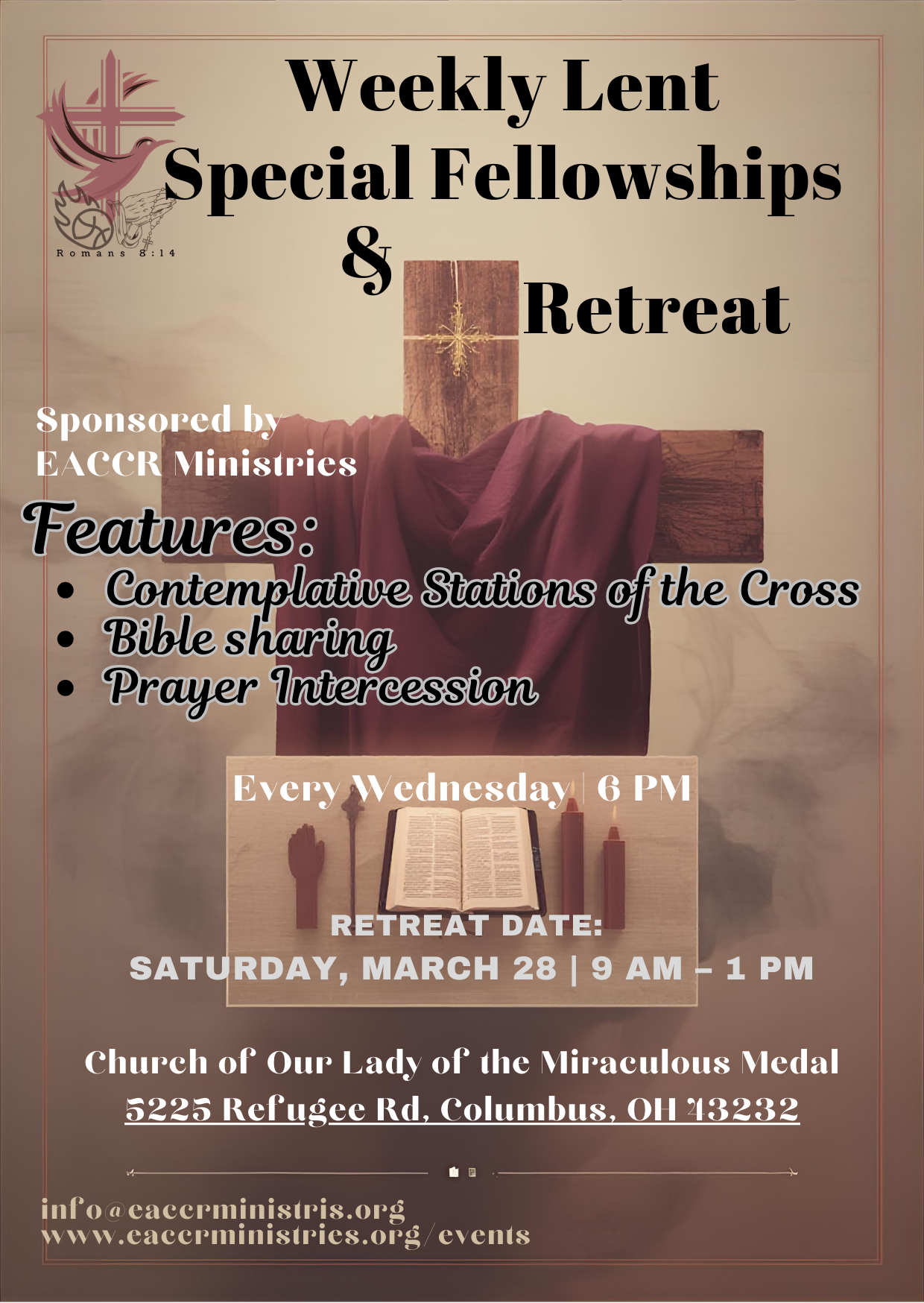 Cheryl at 614-861-1242 (Church of Our Lady)